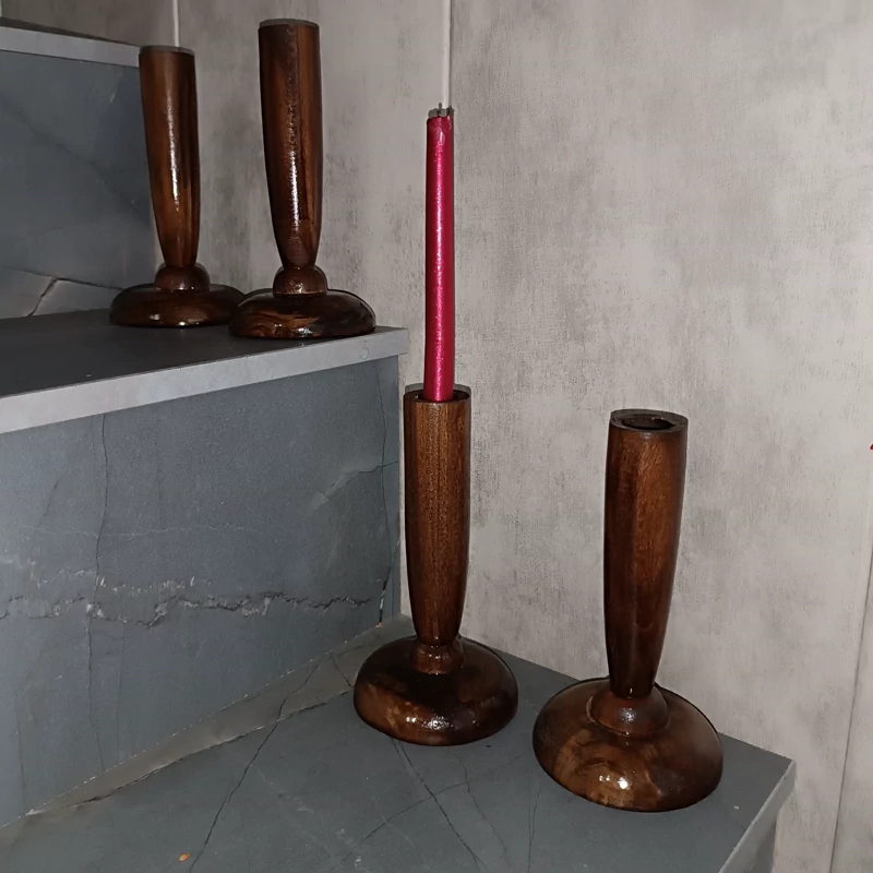 جاشمعی چوبی ساخته شده از چوب چنار با رنگ قهوه ای ارتفاع 20 سانت مناسب شمع تا قطر 22 میلیمتر میباشد