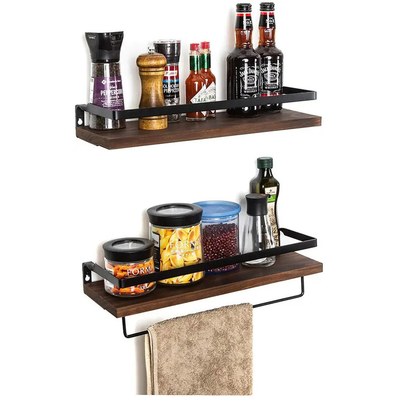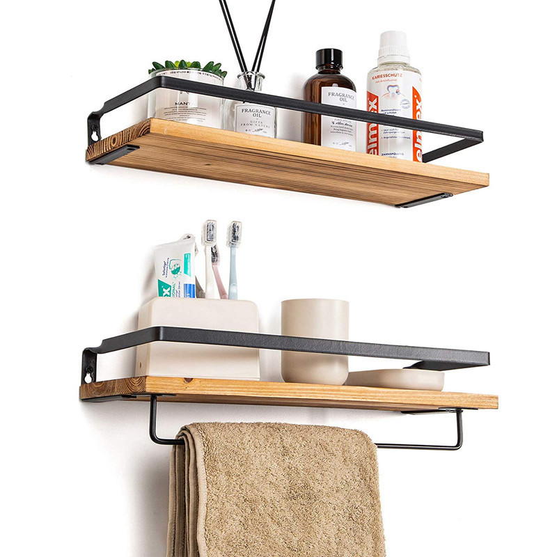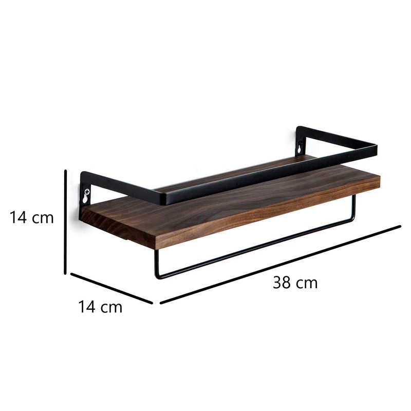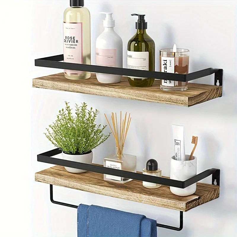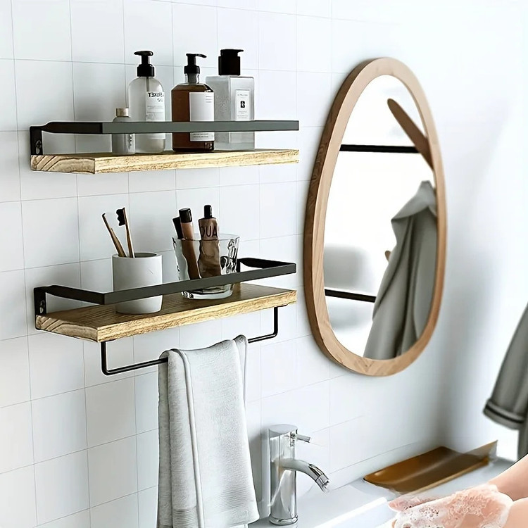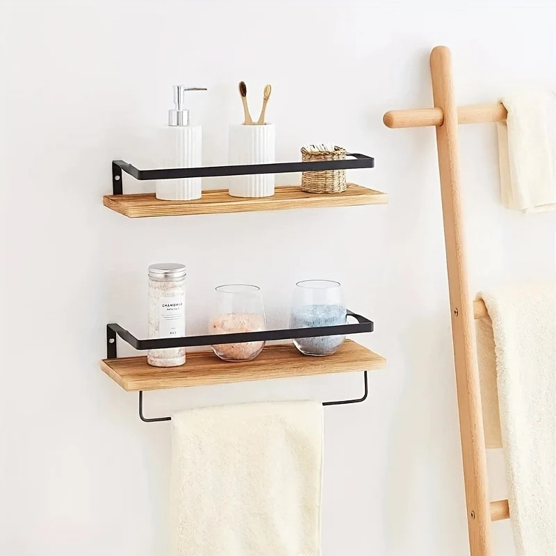 بسته 2 عددی شلف دیواری شامل شلف دارای آویز حوله و شلف ساده و 4 عدد آویز S متریال pvc ضد آب طرح چوب