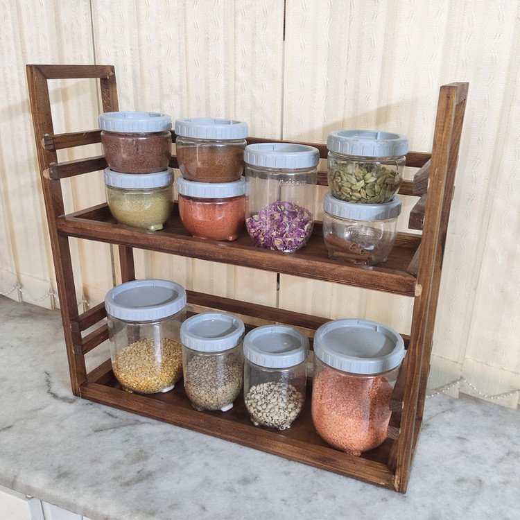 کاربردها نگهداری ادویه، شیشههای چاشنی، ظروف کوچک، کتاب آشپزی، لوازم دکوری