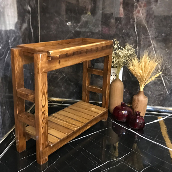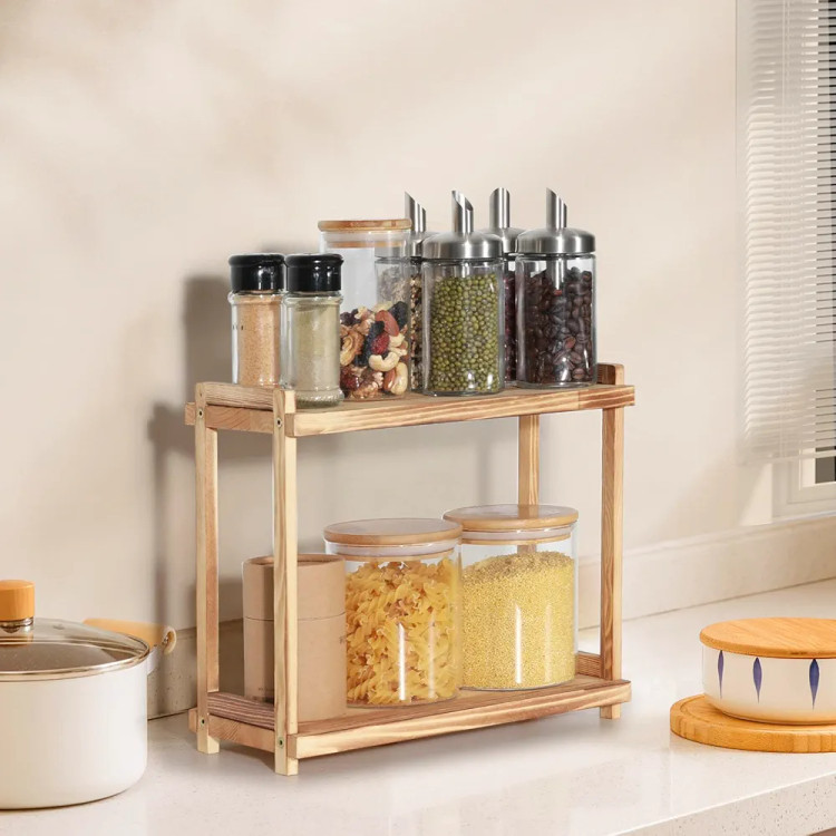 شلف رومیزی دوطبقه مدل ST4001 | سازماندهی هوشمندانه با چوب طبیعی | هاما چوب