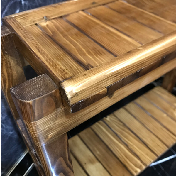 · چوب طبیعی، نه MDF و نه روکش: ما از ورقهای مهندسیشده استفاده نمیکنیم. شلف شما از الوار درجه یک چوب کاج ساخته میشود.