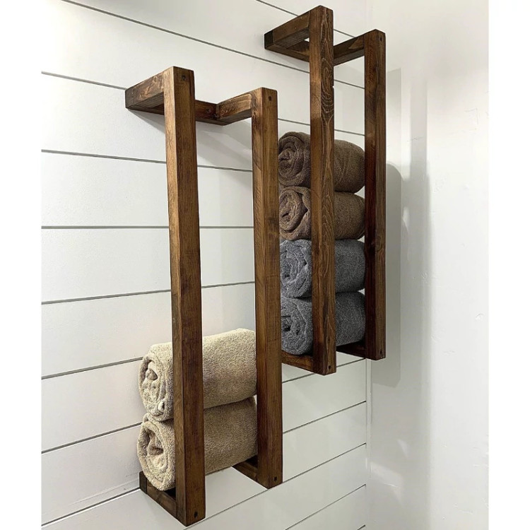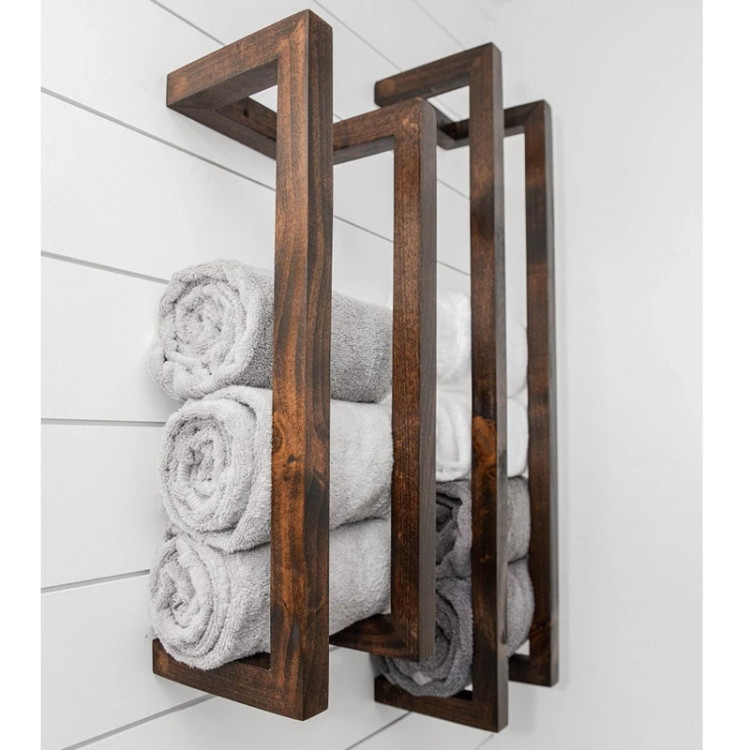 رک دیواری حوله چوب آکاسیا | نگهدارنده دیواری دستساز | هاما چوب